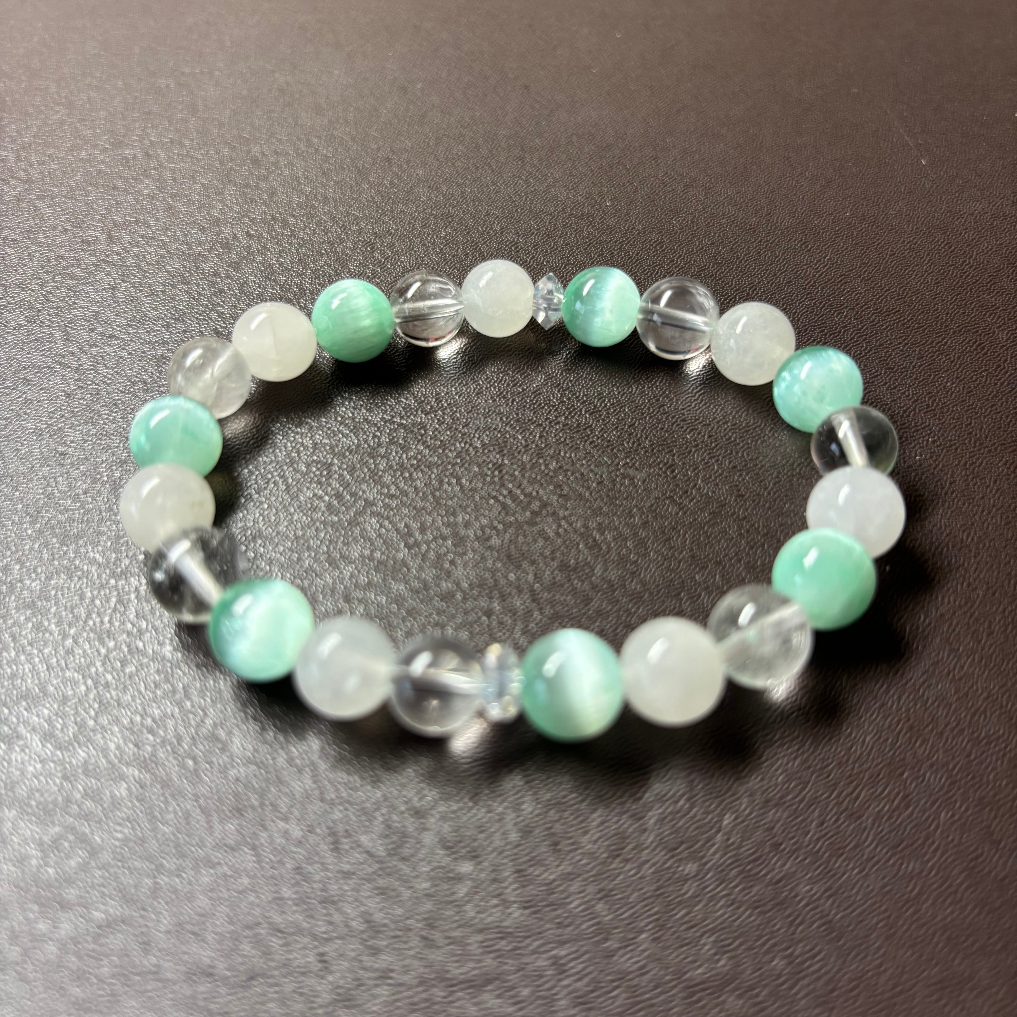 *キャッツアイは天然石のセレナイトを染色したものです。